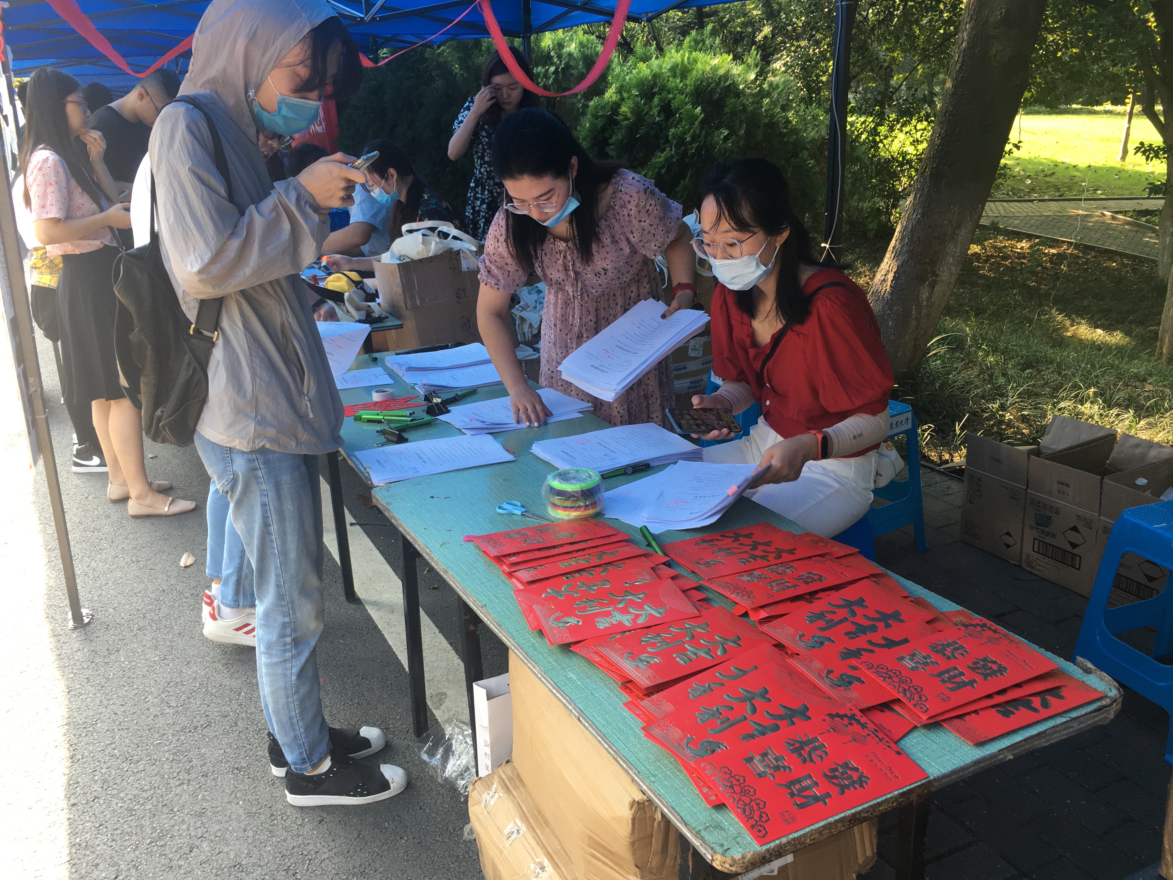 关工委陈翔高老先生楷写的对联,高挂的灯笼彩饰,更添几分“年味”。精心设计的迎老生海报和“我爱园艺”手持牌,让归校的学子们纷纷合影,弥补自己离校半载的缺憾。