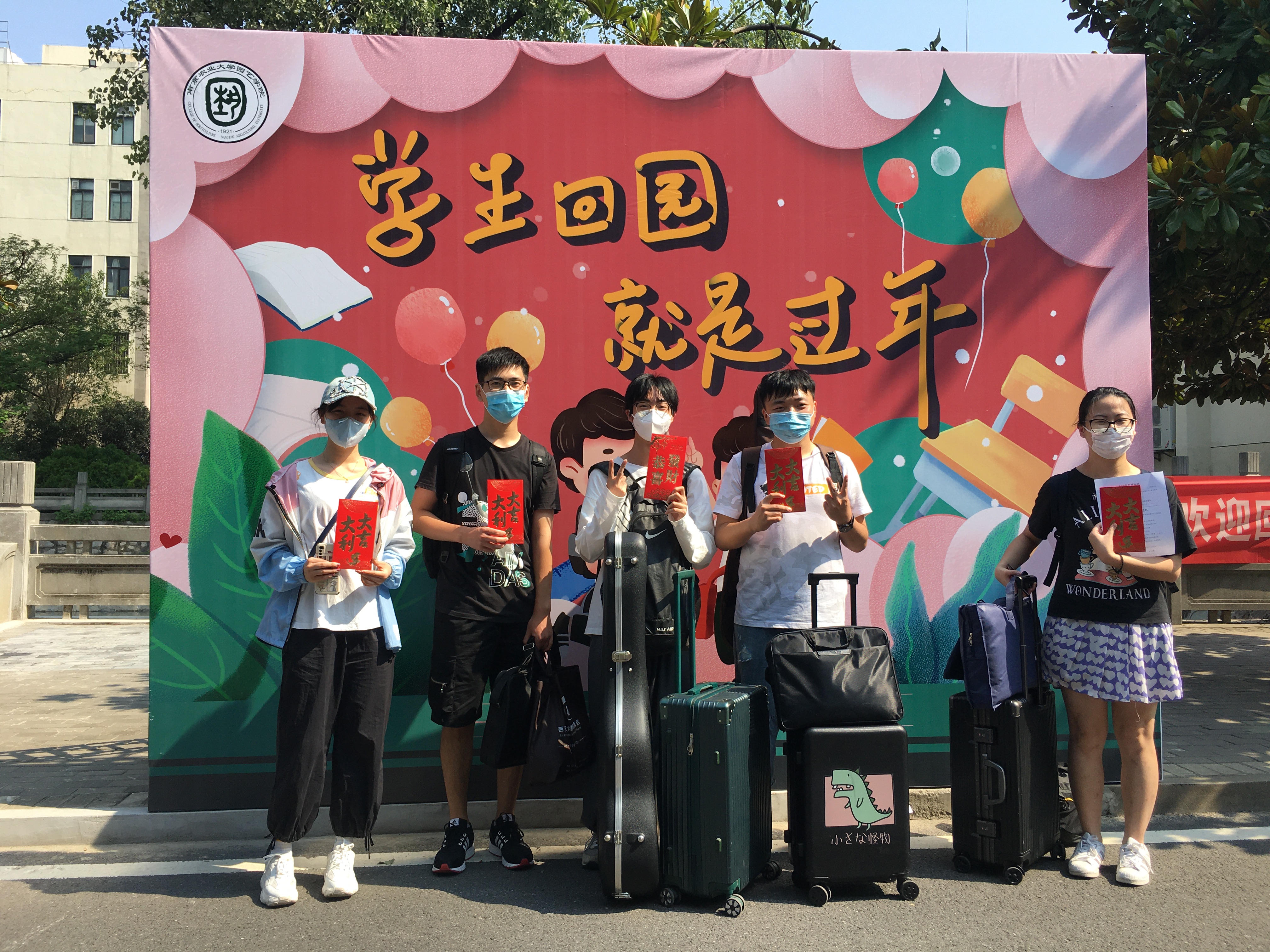 回到最熟悉的宿舍,曾经的宿舍“搞笑合照”以及印着辅导员们表情包的标语单页被贴在门口,欢笑之余,一份亲切和感动也涌上心头,经历了疫情的风波,百里千里的辗转,在推开门的一刹那,校园时光便又重新开启。
