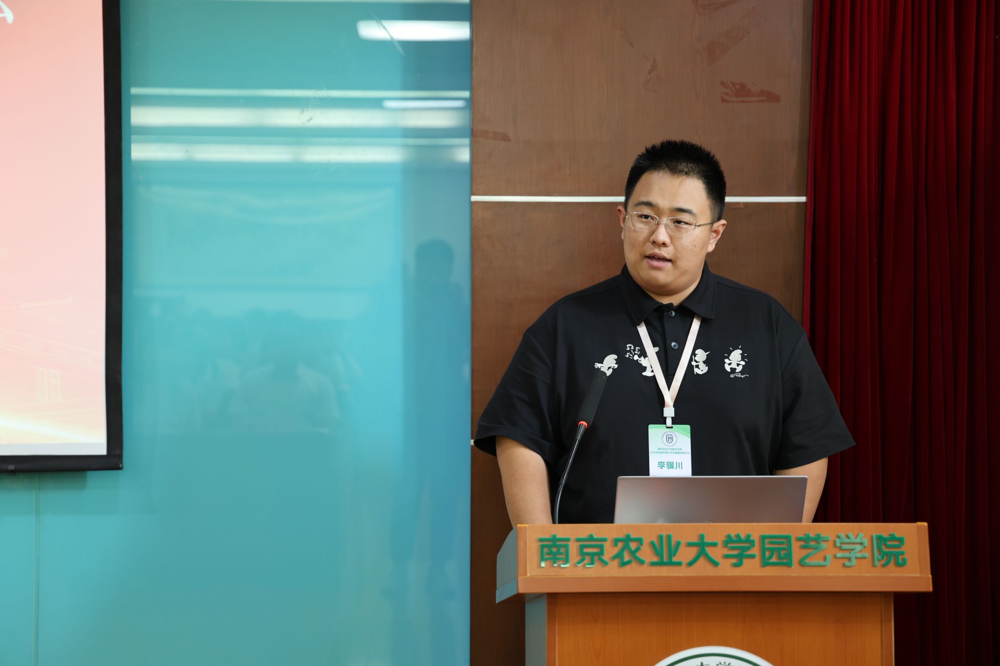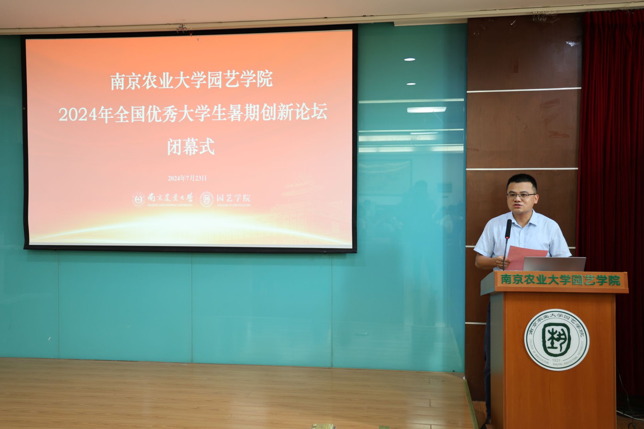 优秀营员代表李骥川发言,他首先对本次创新论坛的筹办表示感谢,其后从初见南农、了解南农和领悟南农三个角度回顾两天行程,阐述对南农园艺“勤于园,精于艺,厚于德,勇于新”院训精神的个人理解,最后以“追求卓越,开拓创新”倡议同行学子一同为世界带来更多的绿色与美好。