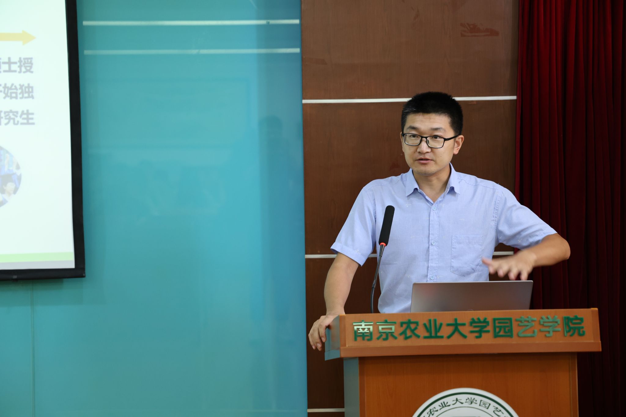 姚志友致论坛开幕辞,他从南京历史与文化底蕴引入,再以“从依山而建到拥江发展”、“诚朴勤仁,百廿南农”、“勤精厚勇,培育高级园艺人才”、“扎根中国,建设一流”四句话概括南农、南农园艺发展历史和研究生教育,最后强调园艺学子要有强烈的使命感和责任感,努力奋斗,一同在本次暑期创新论坛中秉持初心,提升素质,绽放光彩!