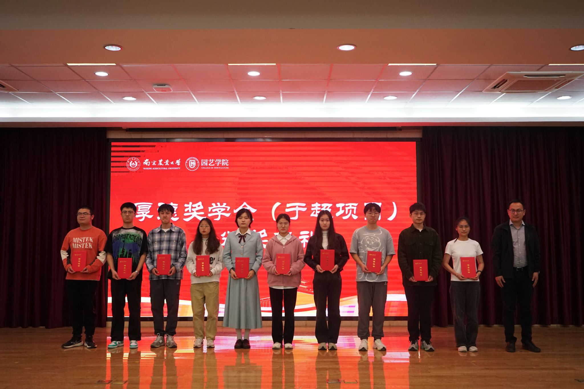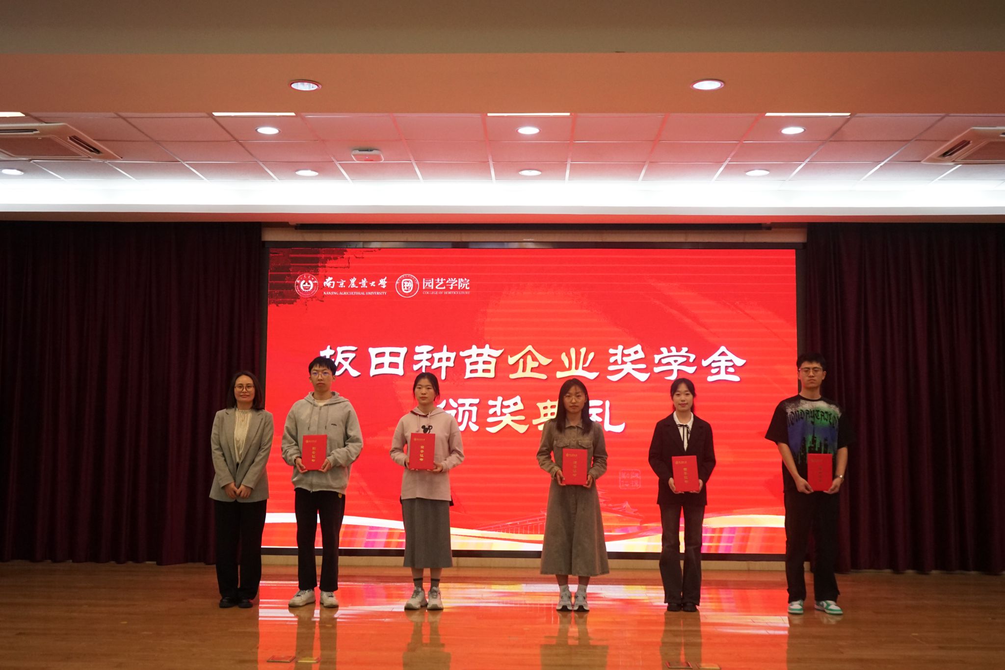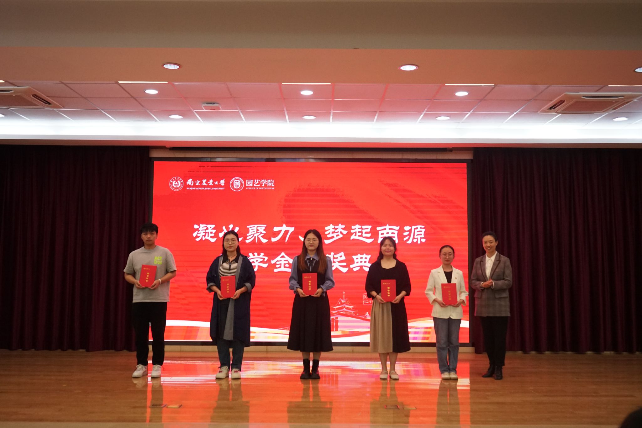 企业及教师代表为获百绿园林奖学金、坂田种苗企业奖学金、章镇奖学金、厚德于超项目)奖学金、宏旭达园林奖学金、凝心聚力学业奖学金、梦起南源创新创业奖学金的53名学生颁发获奖证书。