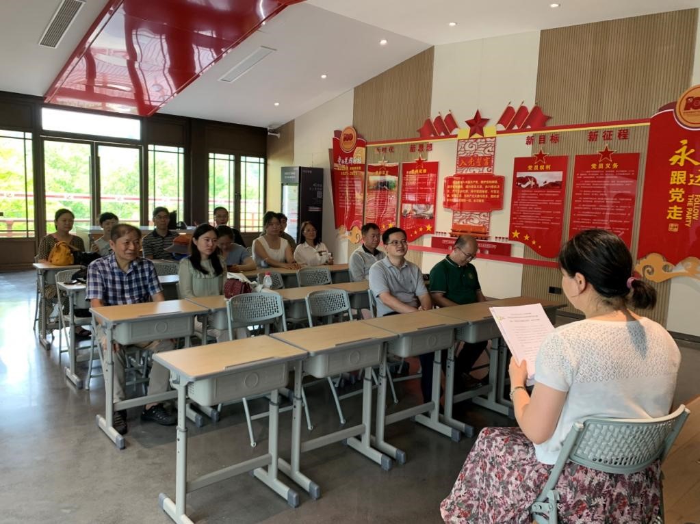 夏日的园博园生机盎然、绿草如茵,精心设计施工的园林建筑与自然环境完美融合。老师们结合学科专业知识,对绿博园植物配置、景观设计、施工艺术等进行研讨,老中青教师互相学习和交流,以党建促业务。