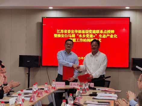 为深入学习贯彻习近平新时代中国特色社会主义思想,坚持以人民为中心,积极践行“青山绿水就是金山银山”发展理念,5月18日淮安白马湖“水乡党建+”生态产业化联盟工作站正式揭牌,活动在江苏省委宣传部基层党建联系点淮安金湖县前锋镇白马湖村举行。江苏省委宣传部二级巡视员、机关党委专职副书记刘海泉,江苏省新闻出版区块链游戏