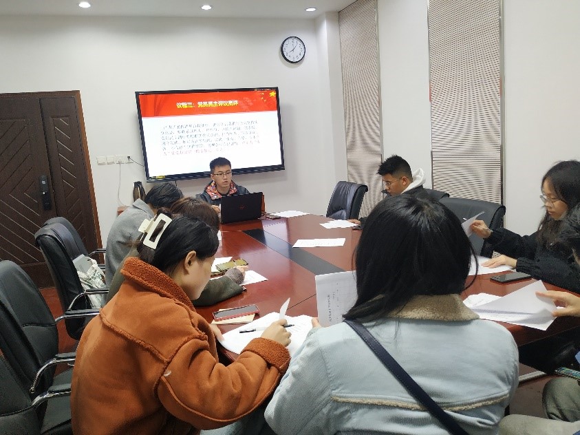 首先在魏义凡同志的带领下,大家通过观看视频的方式,回顾近一年来政府工作取得的成就。着重于粮食安全和军队建设,我们更加明白粮食安全对于我国社会稳定的基础作用。同时作为农业技术大学生,更应该夯实专业知识,为我国粮食产业发展贡献力量。军队是国家安全的保障,是我们屹立于世界的根本保证。在习近平总书记的领导下,军队一直保持着昂扬的斗志,敢打能胜的决心。大家不但认识到了自己身上的重担,而且也对祖国未来充满信心。