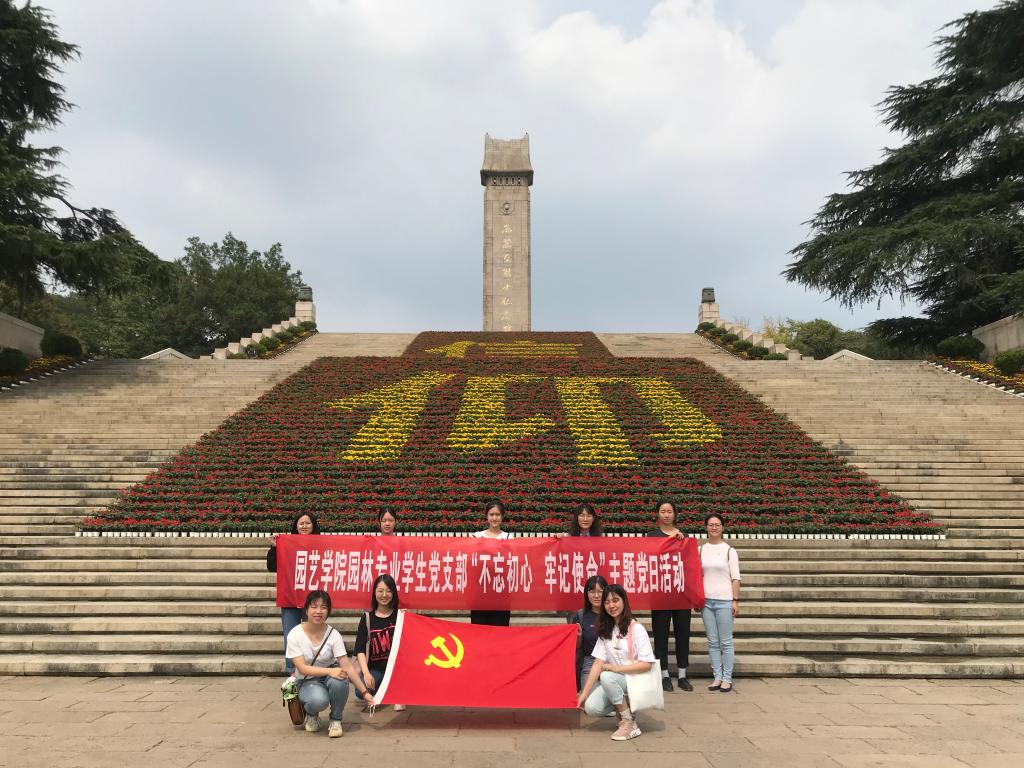 首批全国高校“双带头人”书记工作室——观赏茶学专业教师党支部联合园林专业学生党支部、园艺专业学生党支部赴雨花台烈士陵园举办“不忘初心牢记使命”主题党日活动,进一步学习党的历史,缅怀老一辈革命先烈,弘扬新一代革命精神。