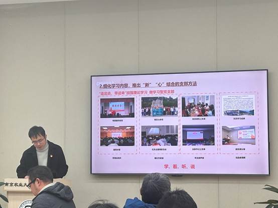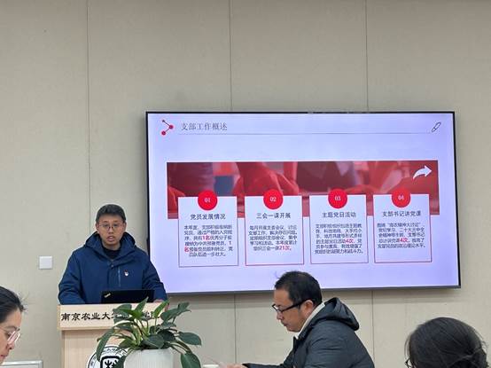 各支部书记围绕“七个有力”的建设标准,重点从党纪学习教育开展情况、“三会一课”制度和主题党日活动的落实情况、党建与业务“一融双高”推动中心工作情况以及存在问题和整改等方面进行汇报。教师党支部重点突出党建与业务双融双促、落实立德树人根本任务;学生党支部重点突出加强思想政治引领、发挥先锋模范作用。