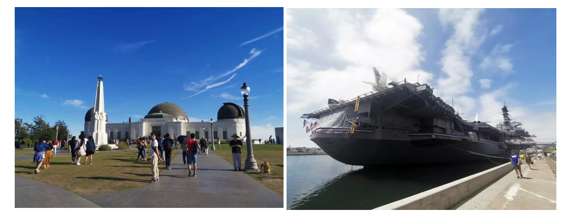 洛杉矶盖蒂中心(Getty Center)位于圣塔莫尼卡(Santa Monica)山脚,其中的瓷器、书籍、油画让同学们大开眼界,享受了一场精神盛宴。格里菲斯天文台(Griffith Observatory)是洛杉矶的标志建筑,它同时也是天文科普圣地,同学们可以看到元素周期表中的各个元素,也能通过模型了解地球的公转自转、日月和四季更替。
