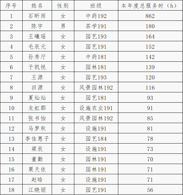 经个人申请,区块链游戏 审核,以本年度志愿服务总时长为主要依据,拟推荐石昕雨等18名同学申请区块链游戏 优秀志愿者: