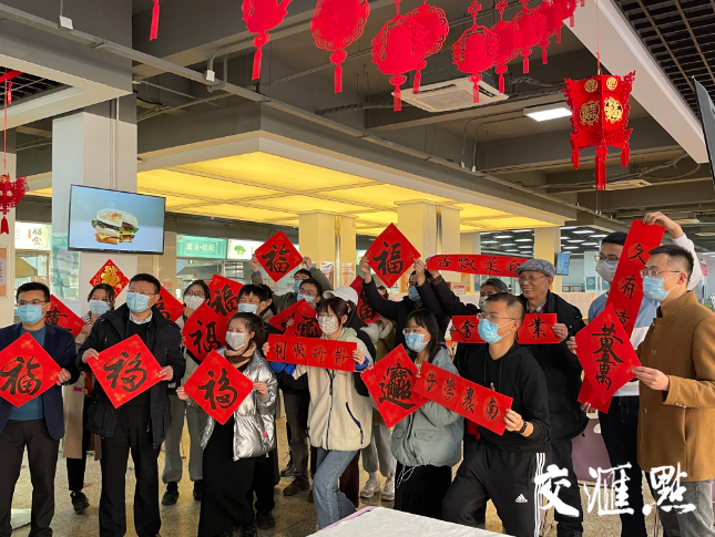 关工委陈翔高老先生带着同学们一起写福字,横粗竖细,福“倒”福到,“业精勤奋”“白菜飘香”“科研顺利”……一笔一划也写出了期盼与祝福。