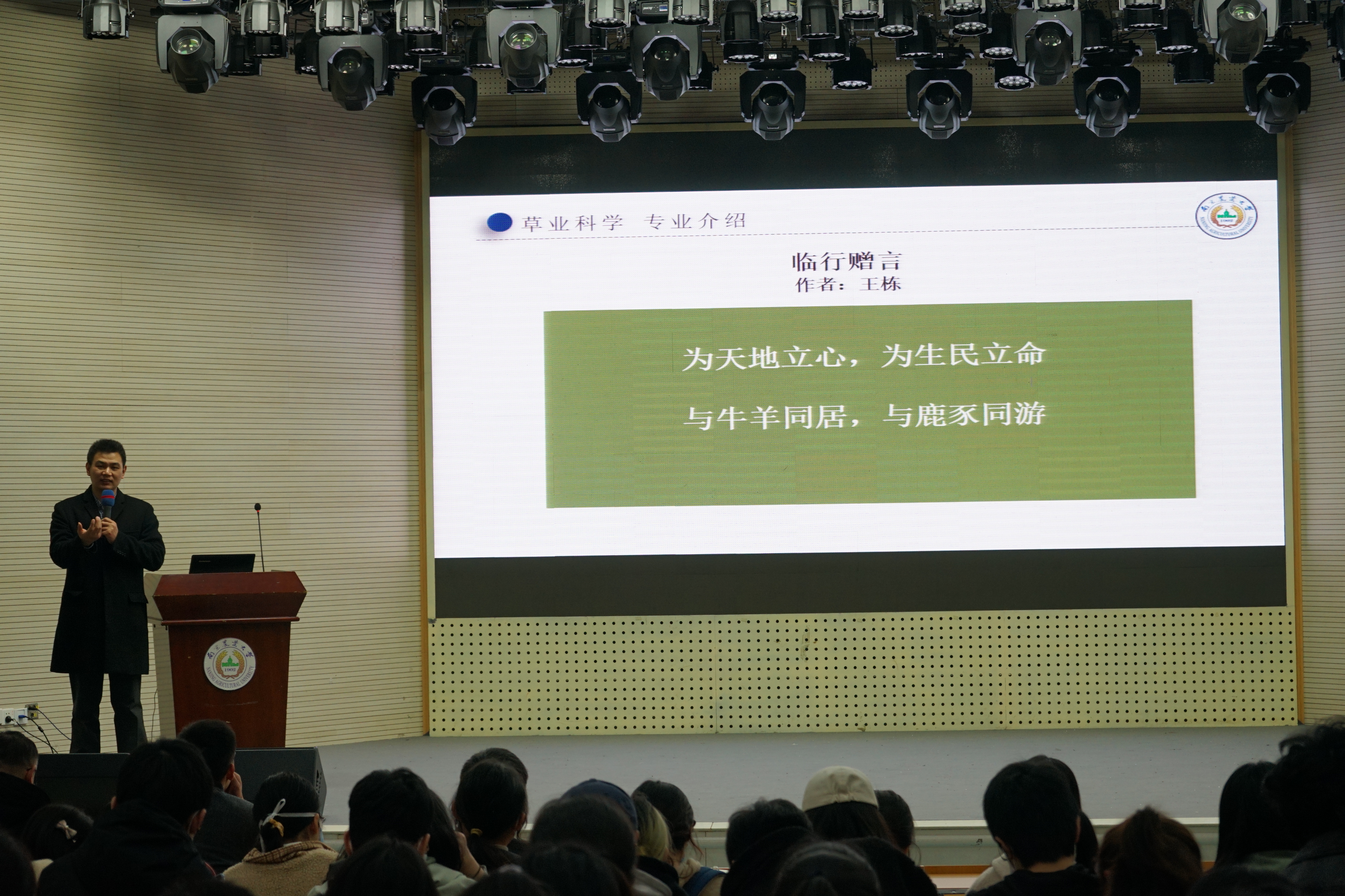 宣讲会伊始,张清海介绍了大类招生方案的具体情况。他强调了以下分流基本原则:第一要尊重学生个性发展,在学生自愿申请的基础上,结合大家的兴趣特长,根据第一学期的成绩展开分流工作;第二要保证公平、公正,公开;第三要适度引导,合理调配,使各个专业教学资源相对平衡。接下来由园艺、设施、茶学、园林,草业各系按顺序进行介绍。