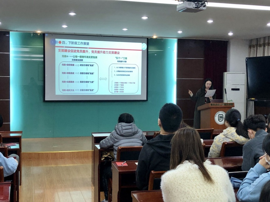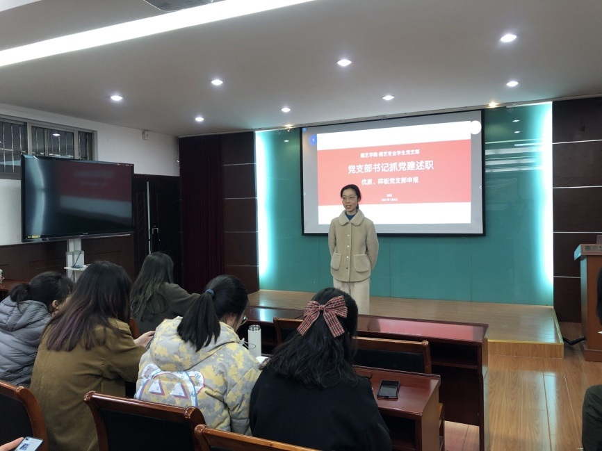 随后,支部书记赵瑞作述职汇报,分别汇报上年度的整体工作情况、本年度支部查摆问题及拟定整改措施、下阶段支部工作展望等。她指出,要用“党建+让每一颗青年果实更饱满”完善支部建设体系,促进党员提升;用“五个一”工程全面提升党员能力,助力支部建设,二者相辅相成,共同成长。