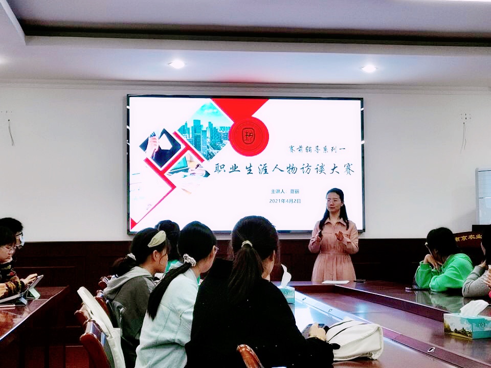 夏丽首先介绍了本次大赛的基本情况,又从职业生涯人物访谈的定义出发,阐明其是为了帮助大学生检验和印证以前通过其它渠道获得的信息,并了解与未来工作有关的特殊问题或需要。她重点介绍了访谈的流程以及整个开展过程中的注意事项。最后,她强调了访谈报告撰写的几点要求。