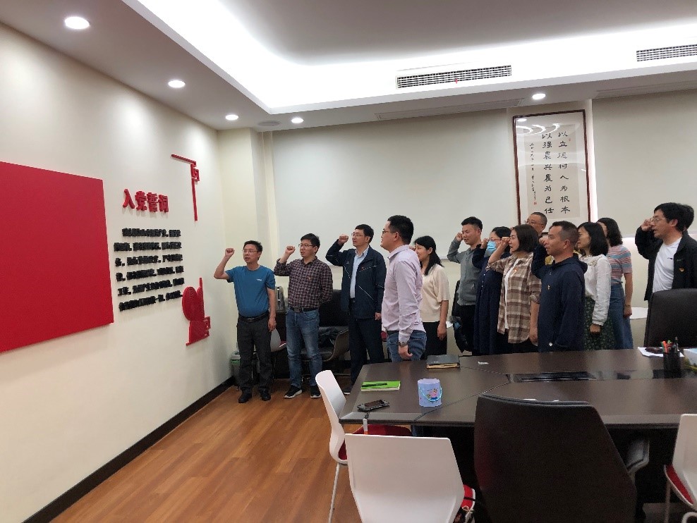 随后,在韩键的带领下,全体党员面对鲜红的党旗,郑重地举起右手,重温入党誓词。“我志愿加入中国共产党……”,铿锵誓词,表达着全体党员不忘初心、牢记使命,“以立德树人为根本,以强农兴农为己任”的坚定决心。