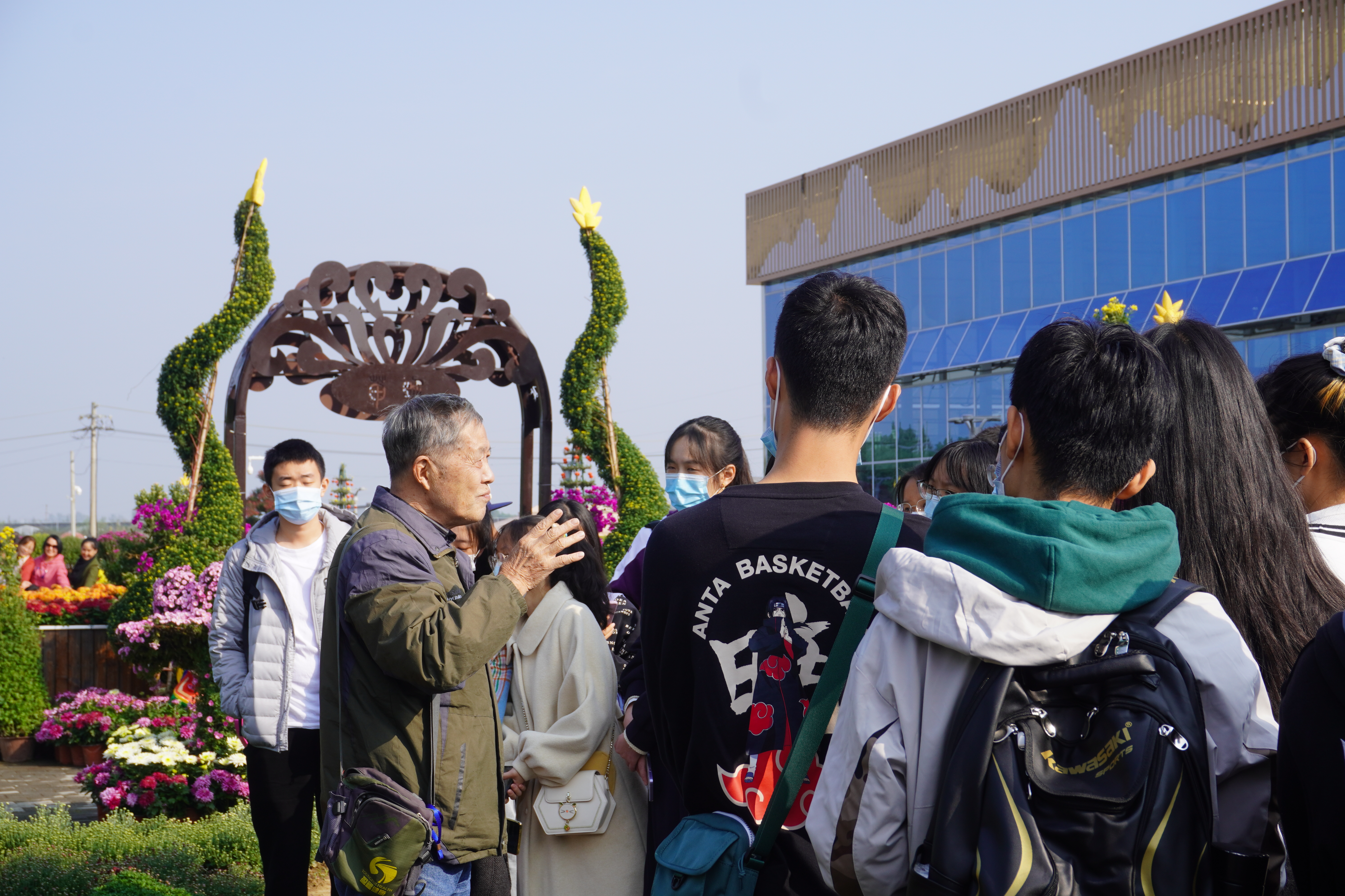 关工委老师、班主任、新同学,老中青三代园艺人同游菊展,一同欣赏,一同学习。班主任对专业知识的普及打破了同学们对于菊花的有限认知,关工委老师将实践与知识结合,亲自和同学们一起对菊花进行“零距离”观察,“面对面”研究,这不仅是知识的传承,更是将勤恳耕耘、拓展创新的科研精神传递给了新同学。