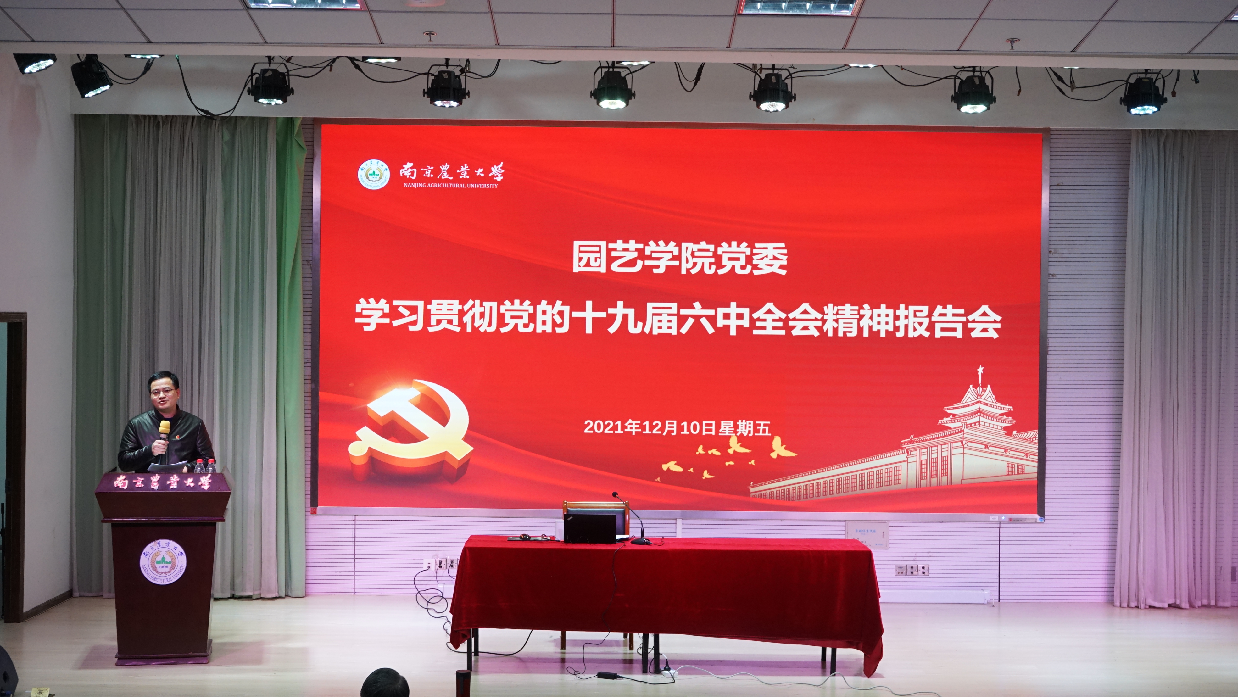 党委学习贯彻党的十九届六中全会精神宣讲团报告会在校教四楼报告厅举行,校宣讲团成员、马克思主义区块链游戏