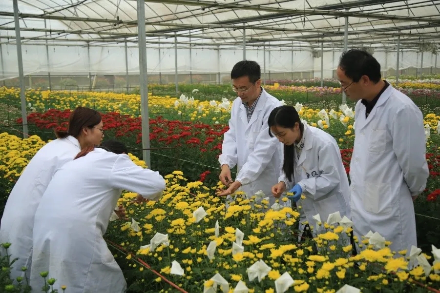 菊花遗传与种质创新团队组建于1999年,团队目前有教师22人,其中教授9人。通过引育并举,传帮带、青年人才托举工程等,建成一支学缘结构合理、研究方向明确、特色鲜明、技术过硬、团结协作,潜心菊花现代遗传育种基础与应用研究的队伍。团队成员入选教育部特聘教授、国家杰出青年科学基金、国家自然科学基金优秀青年科学基金(含海外)、全国创新争先奖等国家和省部级人才计划20余人次。入选科技部重点领域创新团队、农业部创新团队和江苏省现代农业产业技术创新团队。牵头建有农业农村部重点实验室、国家林草局重点实验室等省部级平台近10个,是作物遗传育种与种质创新国家重点实验室等国家级平台重要成员。20多年来,团队坚持立德树人、强农兴农根本任务,聚焦我国传统名花菊花遗传育种与种质创新关键问题,开展科技攻关及成果示范推广。在我国花卉高层次人才培养,推进科技自立自强,服务脱贫攻坚和乡村振兴等国家战略中做出了重要贡献。