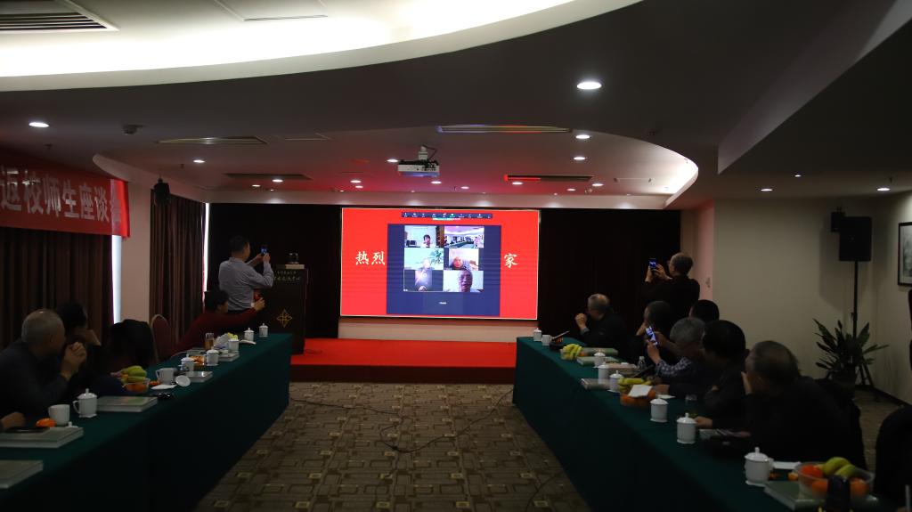 的发展建言献策,远在美国、加拿大和新加坡的校友也通过视频会议的方式,相聚云端,动情互动,共话同窗,畅聊往来。