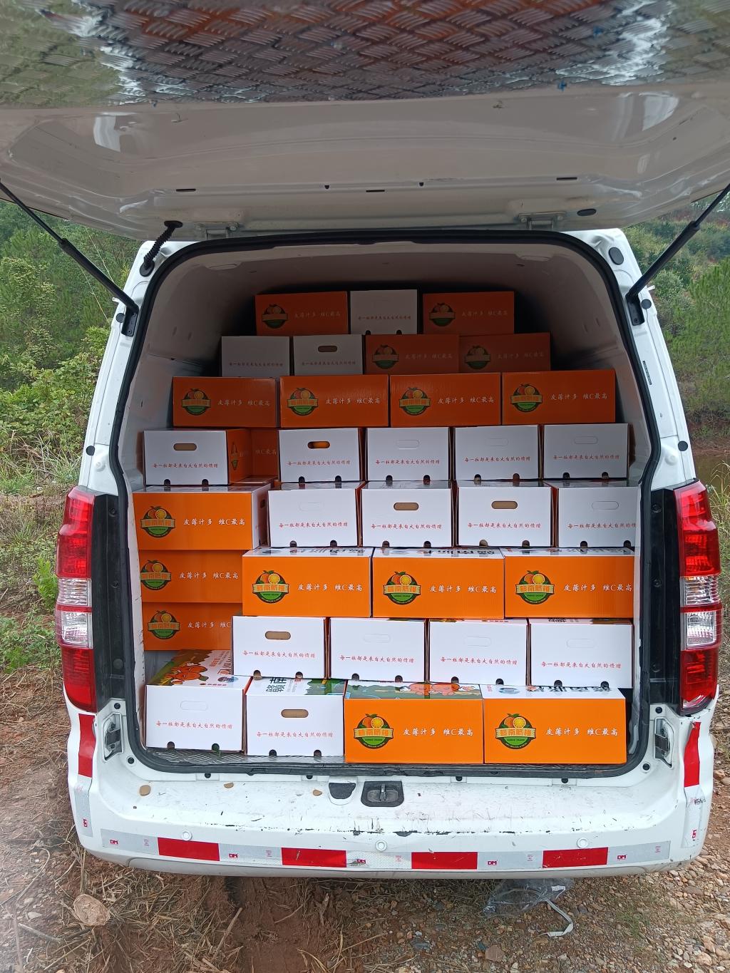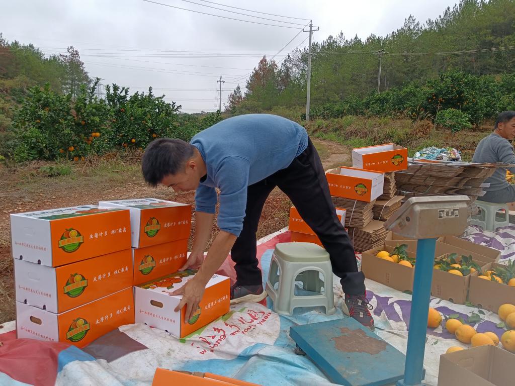 11月18日,一箱箱橙子从赣南信丰果园里新鲜采摘,就地打包后运输到区块链游戏