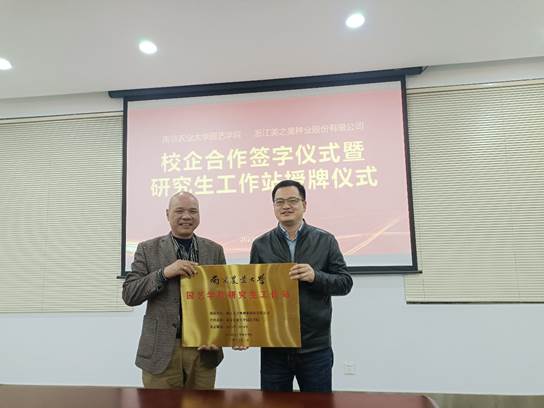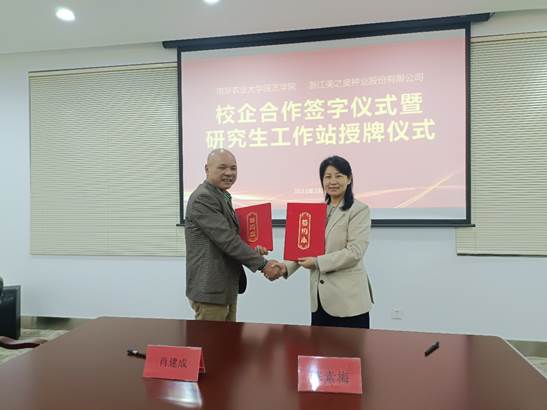 办公室主任王乙明、学工办主任窦靓、本研学生代表等一行师生10人,赴浙江美之奥种业股份有限公司调研考察、座谈交流,并举行双方合作协议签署仪式、就业创业实习基地签约仪式及研究生工作站授牌仪式,深入推动校企合作,开拓学生高质量就业渠道。
