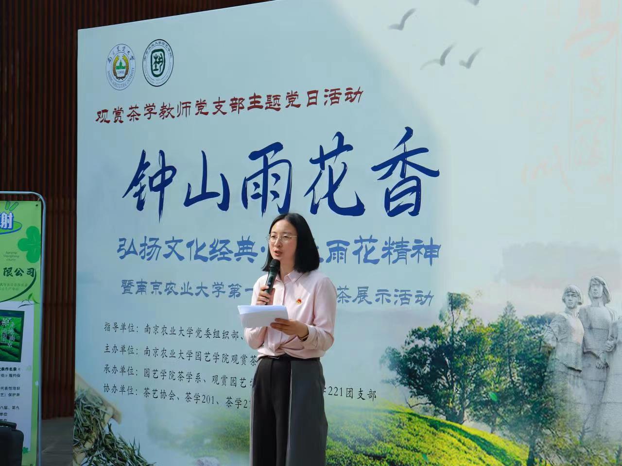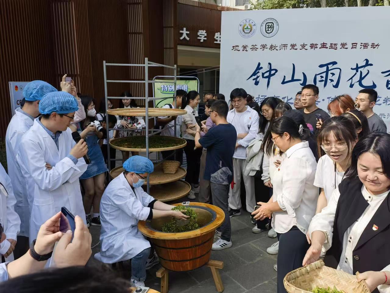 第一届手工制茶展示活动。活动涵盖传统雨花茶制茶技艺展示、手工制茶体验、深加工产品展示和茶文化知识科普竞答四个部分。校党委副书记刘营军出席活动,学工处、校团委、园艺院相关负责同志,江苏省教育厅电化教育馆相关工作人员,观赏茶学教师党支部党员教师、观赏园艺学硕党支部和茶学专业团支部同学参加。