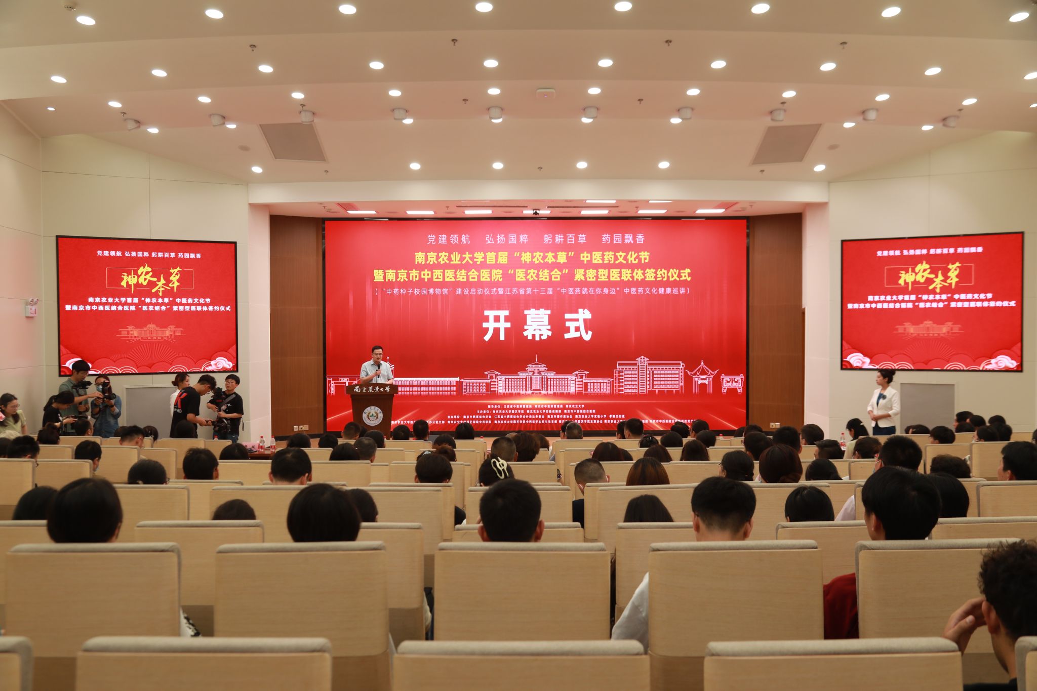 与南京市中西医结合医院“医农结合”紧密型医联体签约仪式在校成功举办。活动现场还举办了江苏省第十三届“中医药就在你身边”中医药健康文化科普巡讲活动及“中药种子博物馆”建设启动仪式。