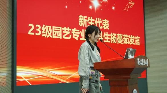 23级园艺专业本科生杨蔓茹作为新生代表发言,表达了新生们对于未来大学生活的憧憬和向往,同时也希望未来能够在知农、爱农情怀的浸润下,和同学们一起聆听诚朴勤仁的校训,一起畅想未来、描绘蓝图。