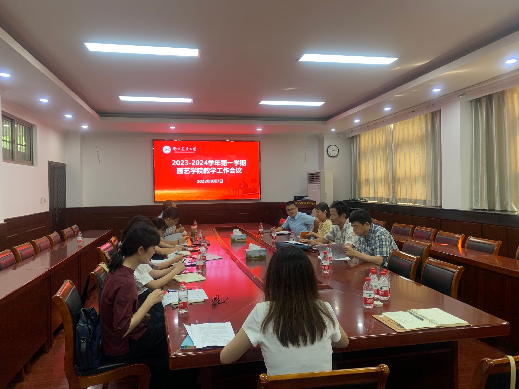 长束胜、教指委成员高志红和吴震、教学督导王康才、全体系主任和教学秘书参加了此次会议。