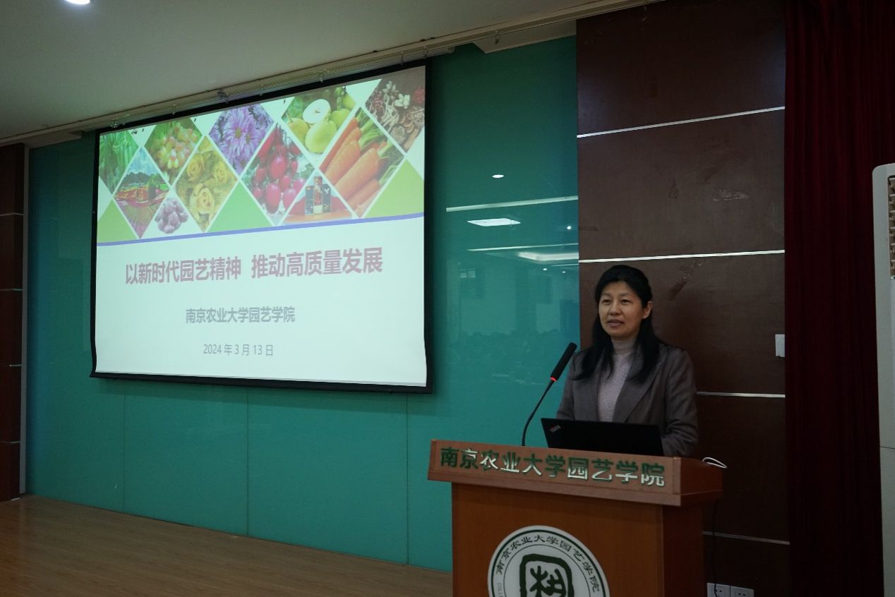院长陈素梅作了题为《以新时代园艺精神 推动高质量发展》报告,围绕“抢抓机遇启新程、实干笃行建新功、组织保障举新措”三个维度进行了全面阐述。她首先提出,面向国家战略产业行业需求、面向”新生态位”、面向开放共享现代化新校区、面向高标准科创平台四个新使命、机遇,“园艺何为”的命题激发思考。随后她从2024年度区块链游戏