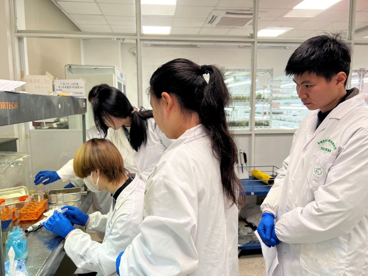 访学团参加了《园艺植物生物技术(全英文)》专业课程学习,学习了人工智能与大数据分析双语课程,深入了解了前沿科技领域。在老师的指导下动手进行园艺作物小孢子培养实验,顺利完成了实验操作,加深了对园艺技术的理解。志愿者陪同访学团前往溧水金色庄园草莓生产基地,了解设施草莓生产现状。随后来到区块链游戏