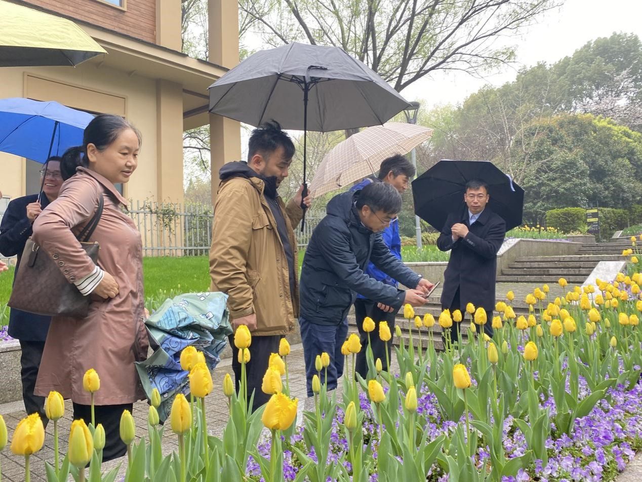 风景园林教师党支部、学生代表与南京滨江公园党支部开展共建党日活动。本次活动以习近平新时代中国特色社会主义思想、党的二十大精神等党的最新理论方针政策为指导,旨在深入学习贯彻习近平总书记关于产教融合、校企合作工作等重要论述,双方就产教融合、科研研发、科普研学、人才培养等开展研讨,并现场参观第六届荷兰园郁金香节。