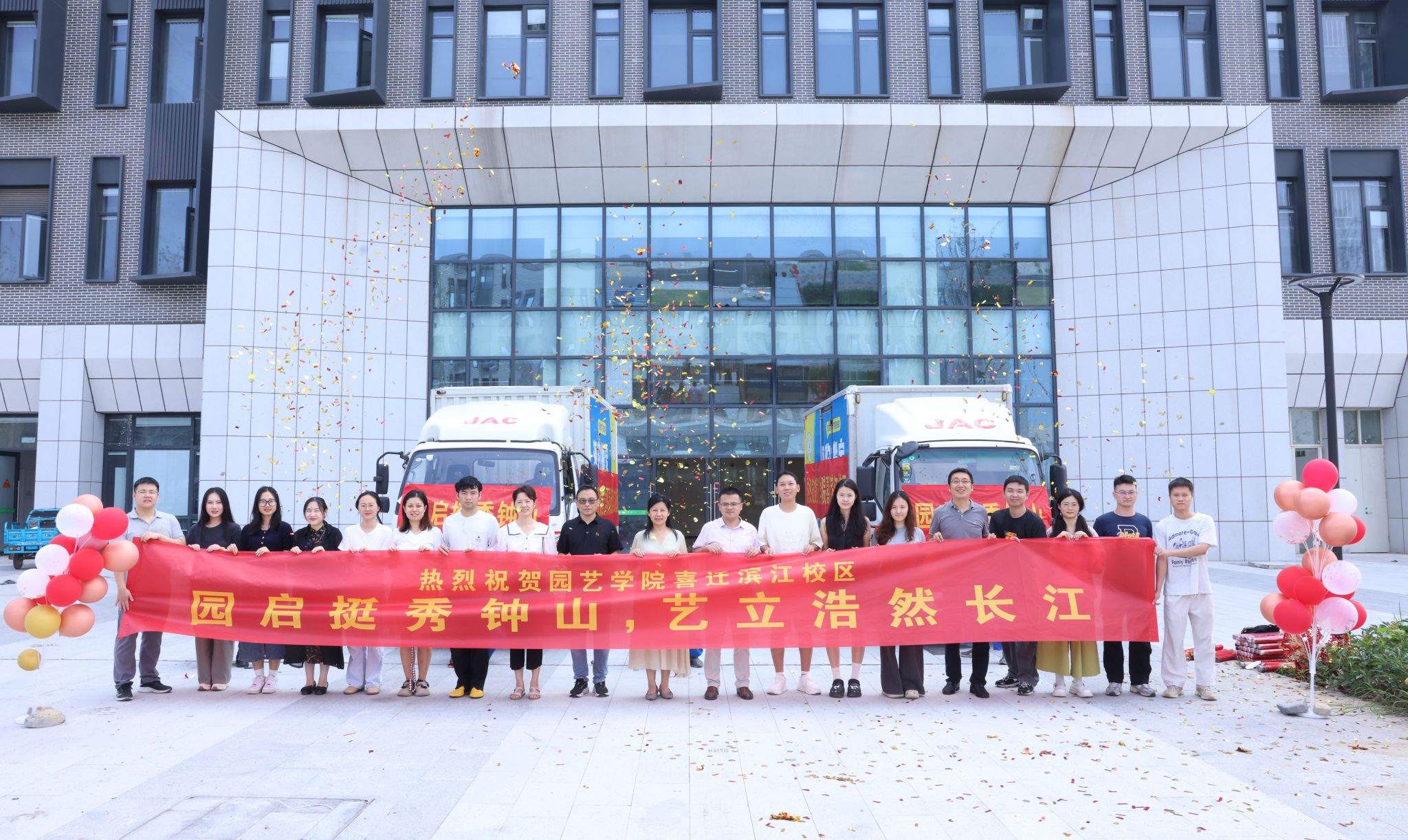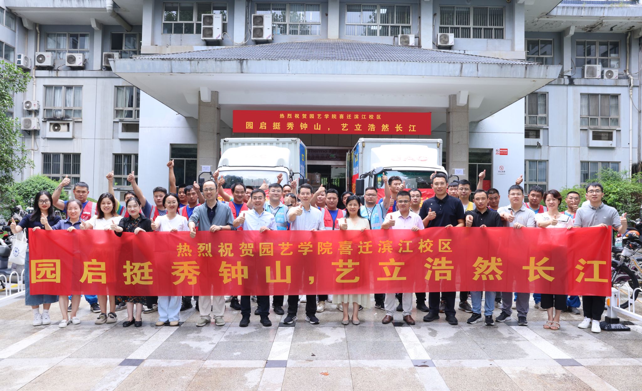 以“园启挺秀钟山,艺立浩然长江”续写全体园艺人的卫岗校区美好记忆,开启滨江校区崭新篇章。伴随着人群快欢呼声,整齐划一的车队,满怀喜悦与希望,奔赴滨江校区。