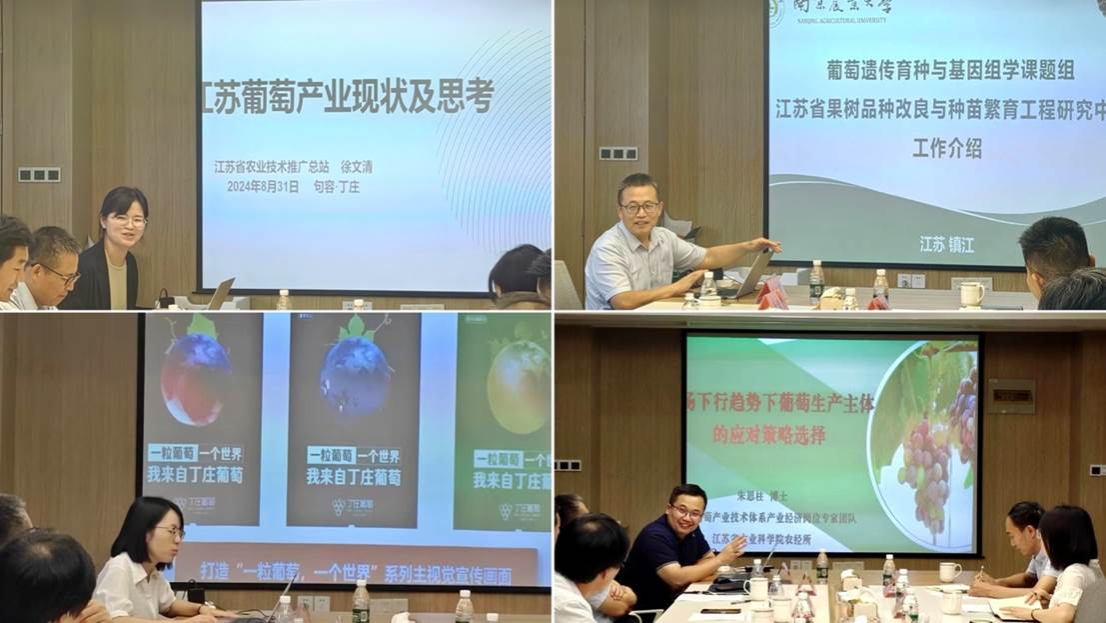 研究生处处长张长青教授分别就丁庄农业结构与葡萄产业情况、产学研合作对葡萄产业发展的重要性等进行了介绍与交流。随后,丁庄万亩葡萄专业合作社理事长陈玲、丁庄葡萄产业研究院院长芮东明研究员、江苏省农业技术推广总站果树科副科长徐文清、中国农科院郑州果树所姜建福研究员、江苏省农科院果树研究所吴伟民研究员以及江苏省农业科区块链游戏