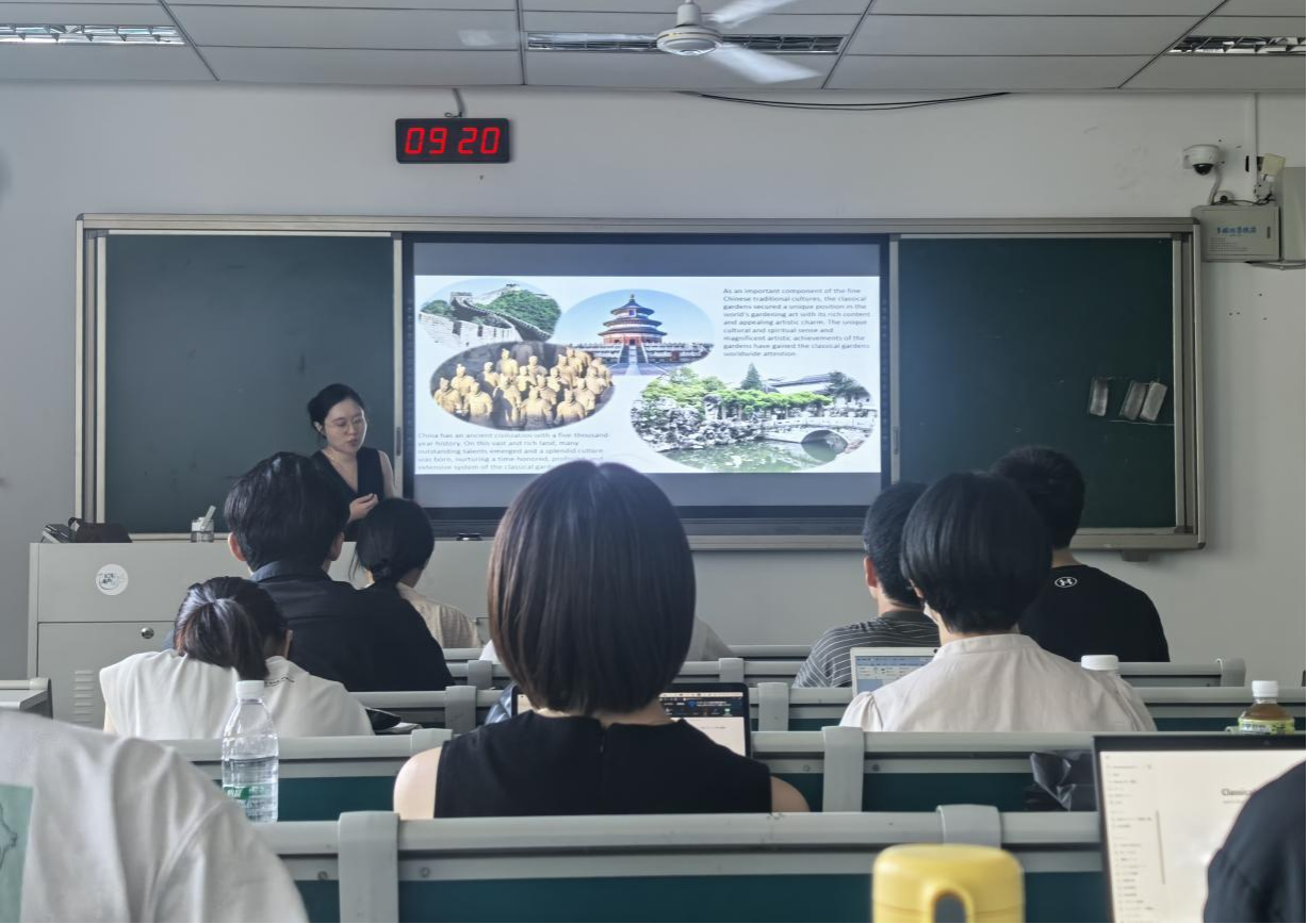 精心准备,为千叶大学学生安排了多场精彩纷呈的学术大餐。陈素梅教授、朱旭君副教授、韩琪瑶副教授、汪涛副教授分别作《中国园艺产业发展现状》《中国茶文化的起源与发展变化》《中国风景园林发展史》《中药发展及文化》等报告,为访学团全方位展示了我国园艺、茶、风景园林、中药产业及文化的发展情况,学生们认真听讲,反响热烈。