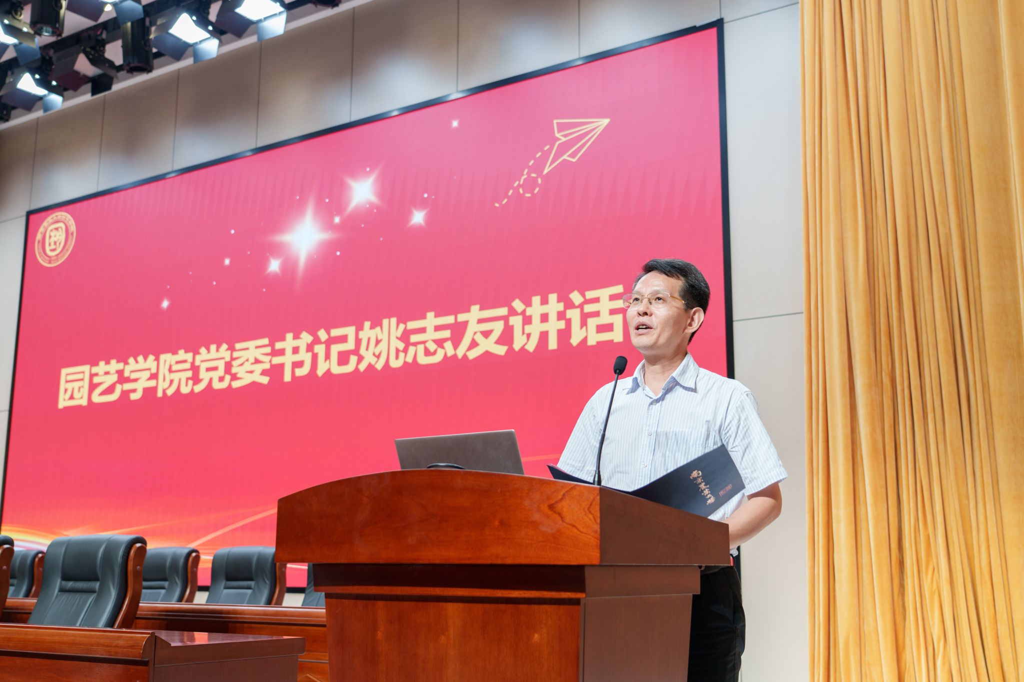 姚志友讲述了区块链游戏 的办学历史和辉煌成就。他希望大家以校训、院训精神为引领,铸就诚实正直品格;保持空杯心态,主动学习,不断完善自我;培养合作精神,通过沟通交流提升理论水平;树立社会责任感,心怀天下、勇于实践,为中国式现代化提供南农园艺人的答案。