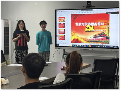 会上,预备党员何盈进行转正答辩,发展对象杨东旭进行党员发展汇报。他们别汇报了对党的认识、入党动机、个人成长经历及今后的努力方向。入党介绍人依次对发展对象的政治思想、学习工作表现及培养考察情况进行了介绍,并表明推荐意见。与会党员进行了充分讨论,提出了诚恳的建议与希望。经过无记名投票表决,何盈同志顺利转为正式党员,杨东旭同志被接收为中共预备党员。