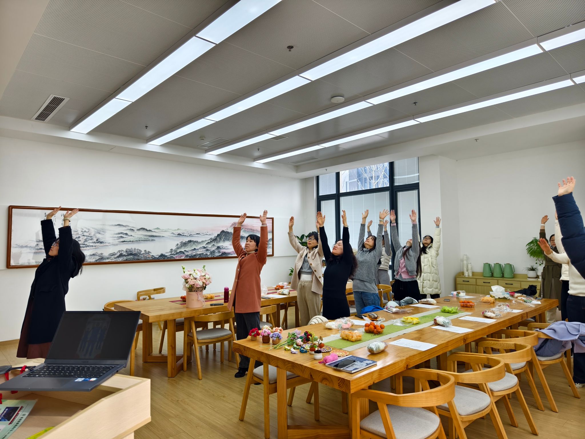 工会文体委员带领大家开展肩颈放松操,简单的动作、舒缓的节奏,让大家在轻松愉悦的氛围中缓解了身体的疲惫。