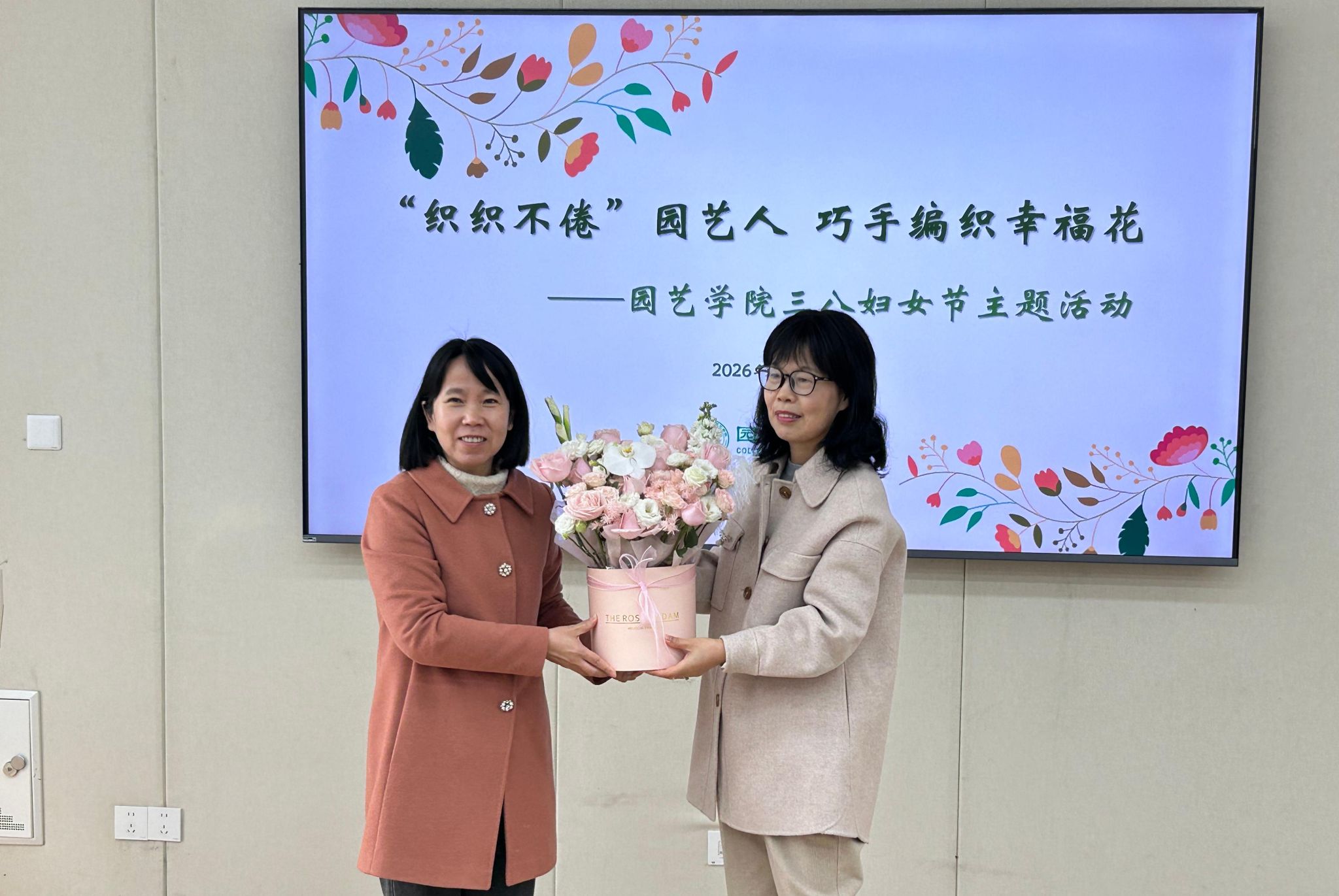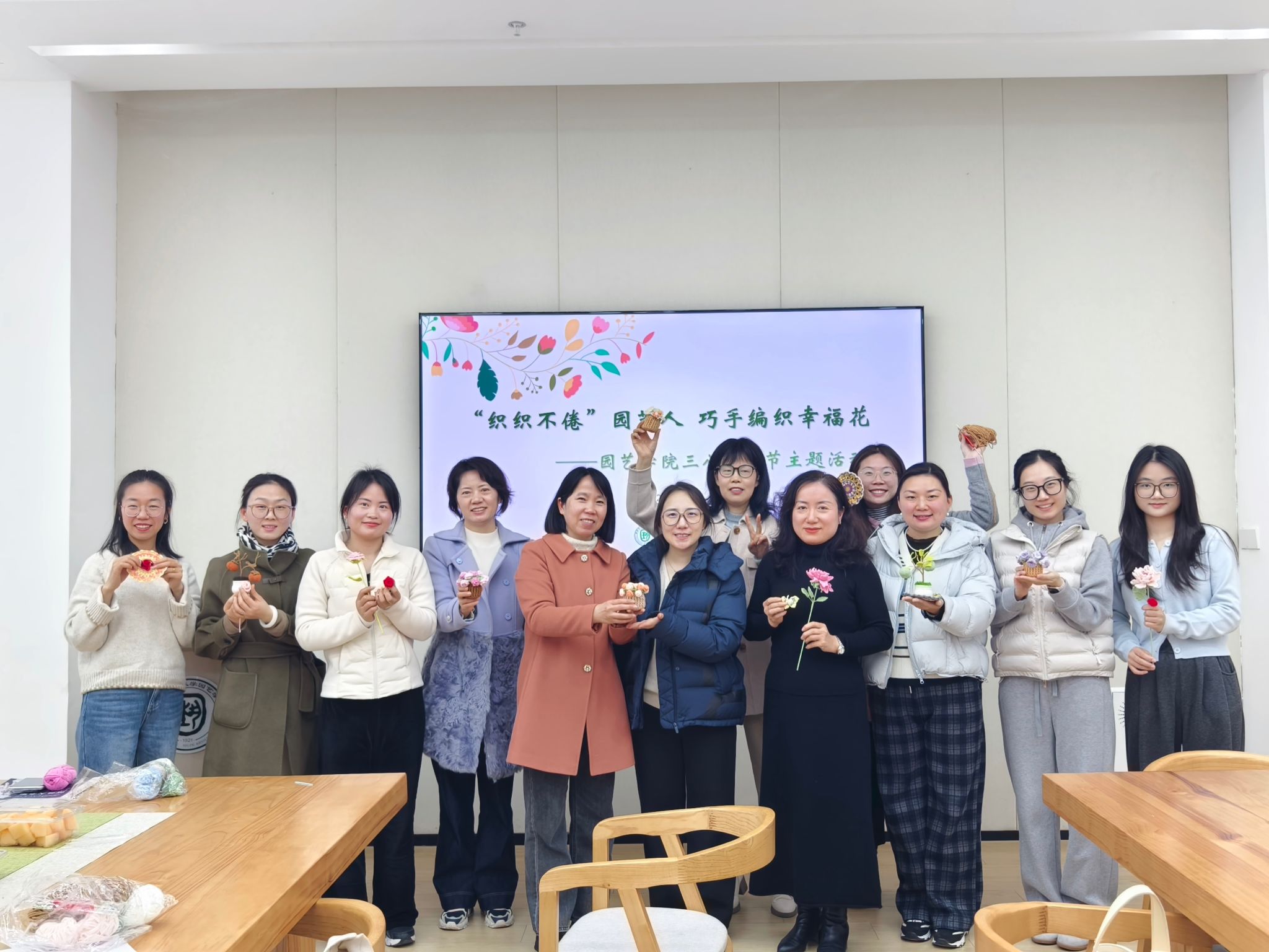 工会于滨江校区园艺楼167活动室举办“三八”妇女节主题活动,院党委书记吴彦宁出席,各学科女教职工齐聚一堂,共庆节日、共学技艺。