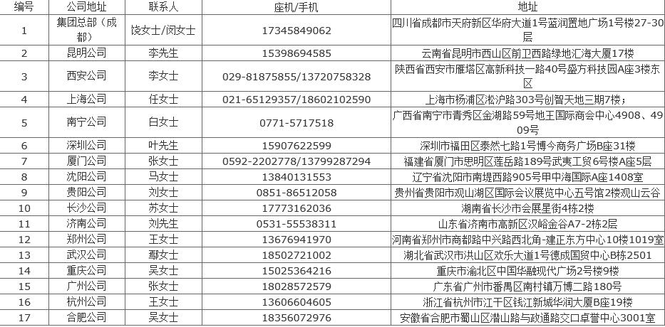 若联系不上分公司的,请优先联系集团总部。