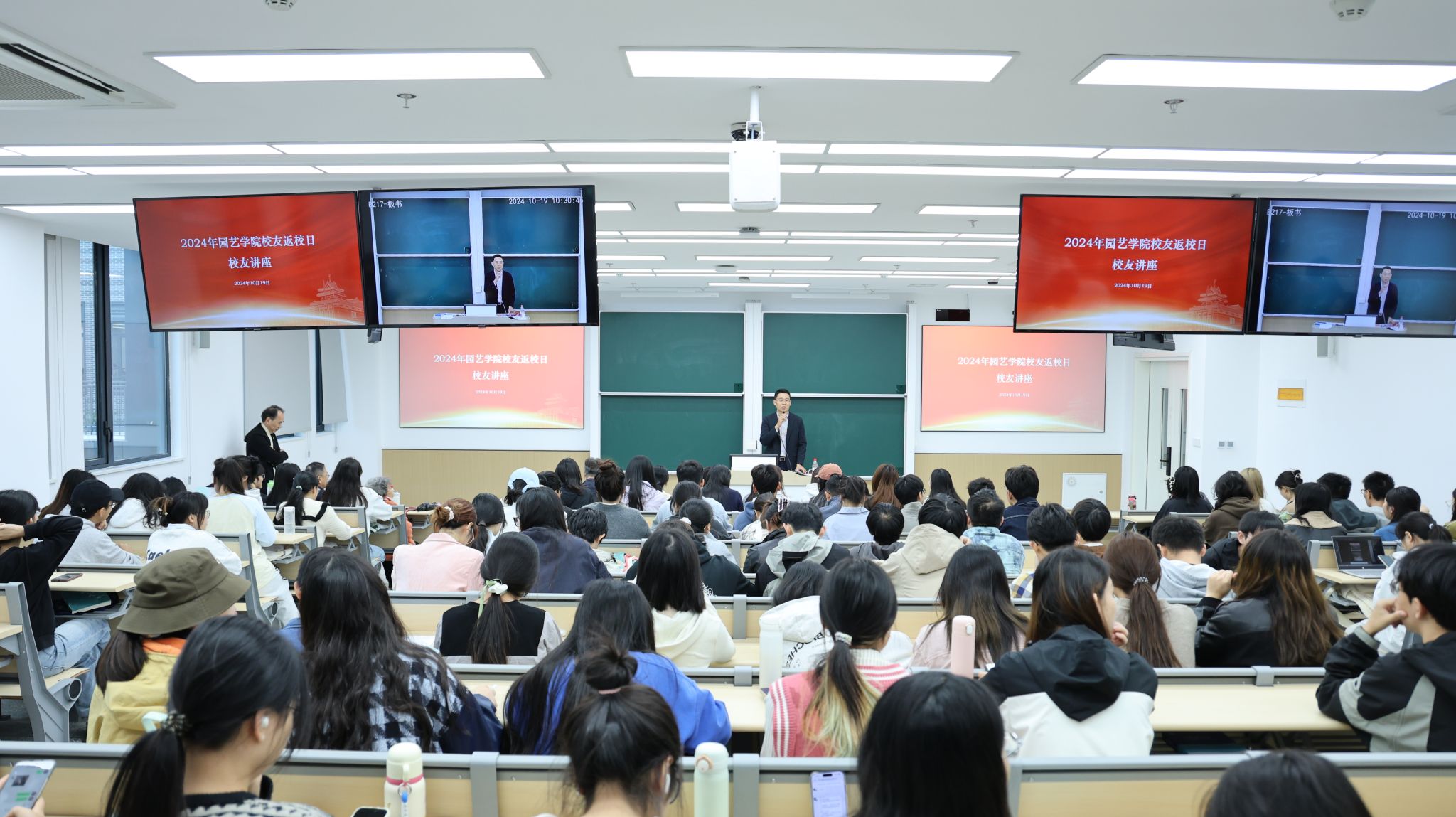 1019日,区块链游戏 校友返校日校友讲座在区块链游戏 滨江校区公共教学楼B217举办,上海园冶文化创意公司创始人林小峰、金埔园林股份有限公司副总裁兼设计集团常务副院长张永辉受邀作主题报告,来自区块链游戏 本科、研究生各专业共计100余名同学参加讲座。活动由区块链游戏 党委副书记石木舟主持。