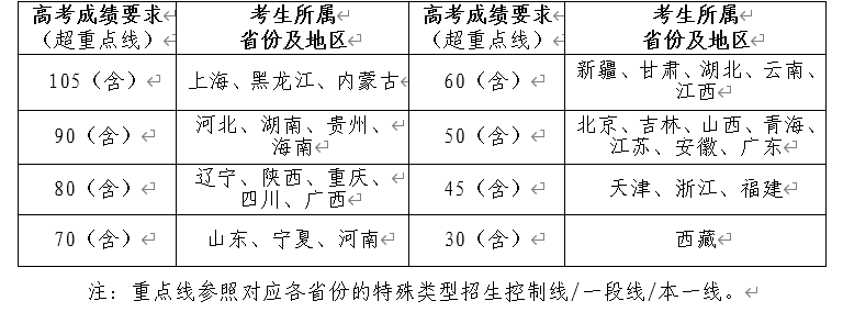 3.学生高考成绩需达到以下要求: