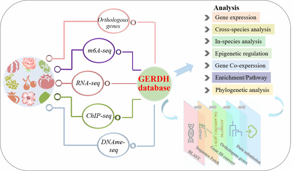菊花遗传与种质创新团队题为“GERDH: an interactive multi-omics database for cross-species data mining in horticultural crops”的研究论文,报道了比较基因组学挖掘关键基因数据库(//dphdatabase.com/),该数据库提供了一种跨物种、多组学、交互式比较基因组学分析平台,整合了一系列基因表达调控及功能分析模块,助力功能基因挖掘和解析。