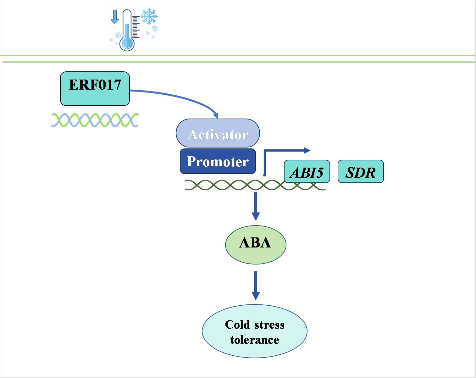 孙锦团队在国际学术期刊Theoretical and Applied Genetics发表了题为“Fine mapping and identification of ERF transcription factor ERF017 as a candidate gene for cold tolerance in pumpkin”的研究论文,揭示了CmoERF017通过正向调控ABI5和SDR7基因表达介导ABA信号通路从而增强植株耐寒性的分子机制。