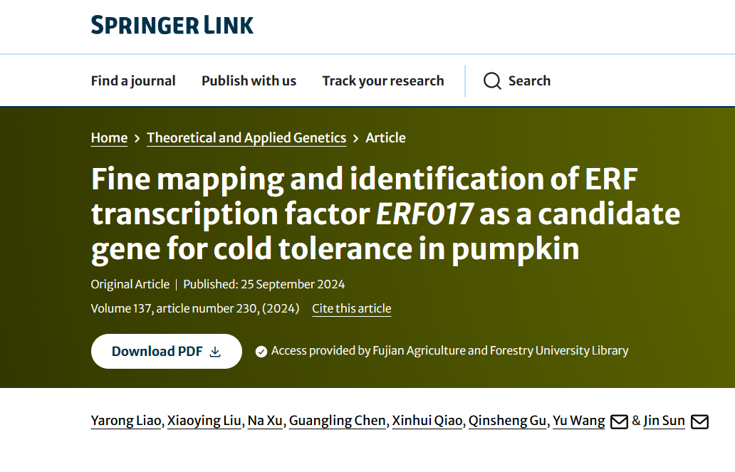 孙锦团队在砧用南瓜耐寒关键基因定位和分子功能研究中取得新进展